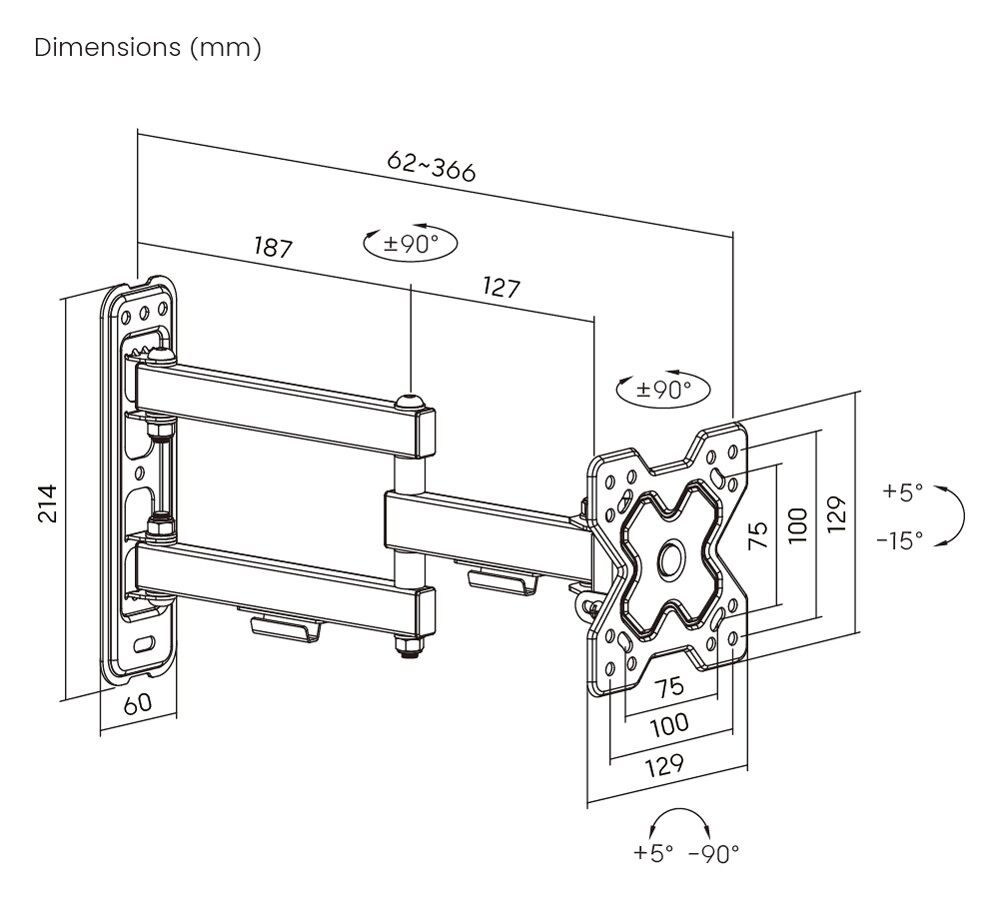 5 Φεβρουαρίου, 2026POWERTECH επιτοίχια βάση τηλεόρασης PT-1280, 43-100″, έως 60kg, full motion