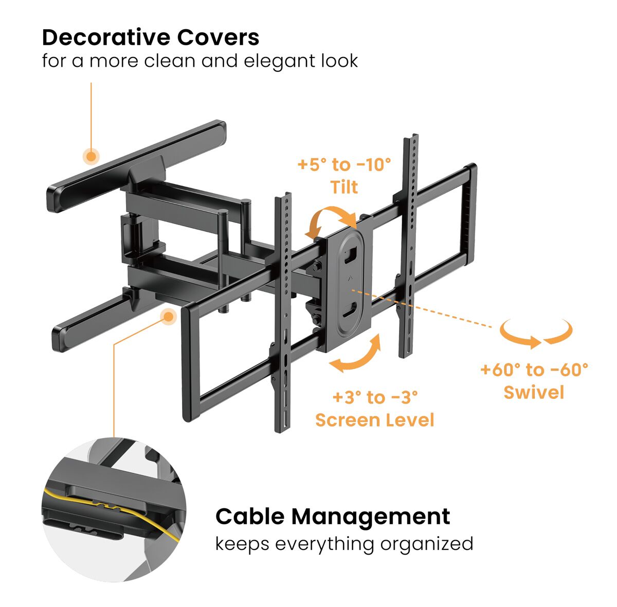 Υποστηρίζουν πρότυπα VESA των πιο διαδεδομένων διαστάσεων και cable management σχεδίαση, για την βέλτιστη οργάνωση των καλωδίων.