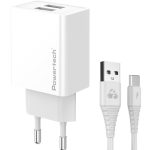 POWERTECH φορτιστής τοίχου PT-1324 με καλώδιο USB-C, 2x USB, 12W, λευκός
