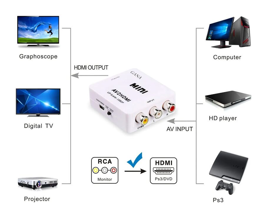 Ο Mini AV2HDMI είναι ένας Universal μετατροπέας για μετατροπή από αναλογική σύνθετη είσοδο σε έξοδο HDMI 1080p(60Hz). Η αναλογική προς ψηφιακή μετατροπή χρησιμοποιεί 10bit/162MSPS. Διαθέτει black/white διαβάθμιση, διαβάθμιση για την βελτίωση των χρωμάτων, auto-detect και auto-convert από σύνθετο σήμα σε έξοδο 1080p(60Hz). Ζωντανεύει τα βίντεο, κάνοντάς τα πιο ευκρινή, με πιο ρεαλιστικά οπτικά εφέ HD.