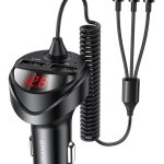 USAMS φορτιστής αυτοκινήτου C22 με καλώδιο 3 σε 1 & οθόνη, 3.4A, μαύρος