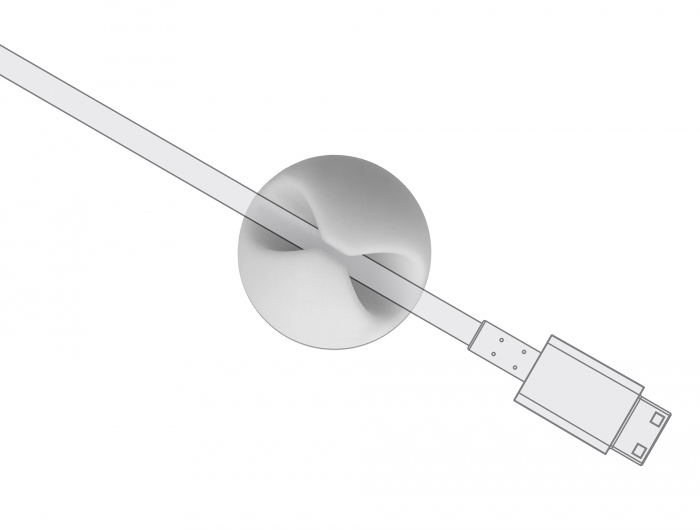 Οργανωτές καλωδίων σιλικόνης με θέση για 1 καλώδιο με μέγιστη διάμετρο 9mm. Είναι κατάλληλοι για την εύκολη τακτοποίηση καλωδίων όπως USB ή τροφοδοσίας και η τοποθέτηση του γίνεται σε οποιαδήποτε επίπεδη επιφάνεια με αυτοκόλλητο. Η συσκευασία περιλαμβάνει 10 οργανωτές καλωδίων σιλικόνης.