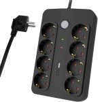 POWERTECH πολύπριζο ασφαλείας PT-1535, 8 θέσεων, με USB & USB-C θύρες, 16A, 1.5m, μαύρο