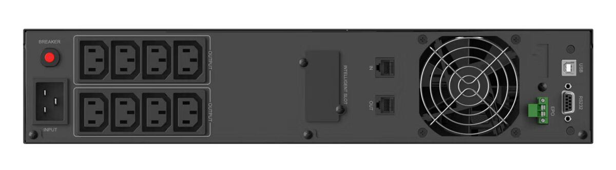 -Θύρες: AC (είσοδος), 8x AC (έξοδος), USB Type B, RS232, 2x RJ45 (IN/OUT)