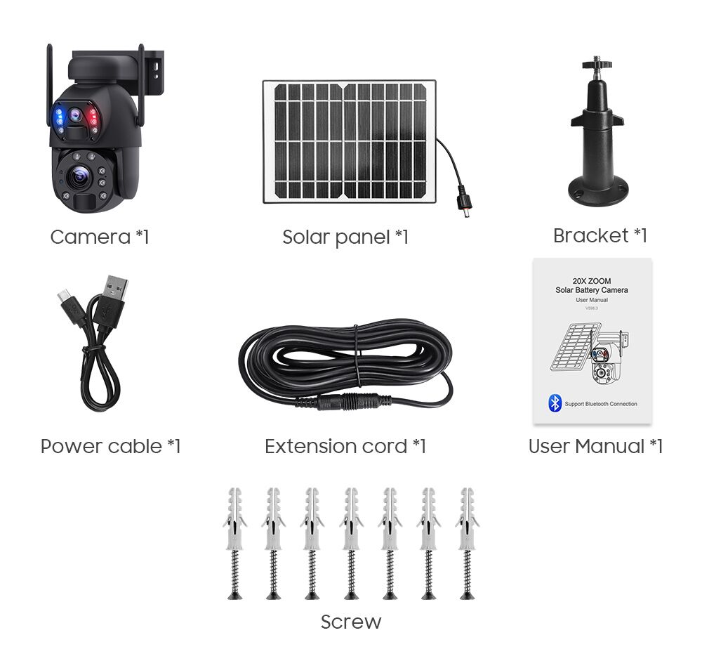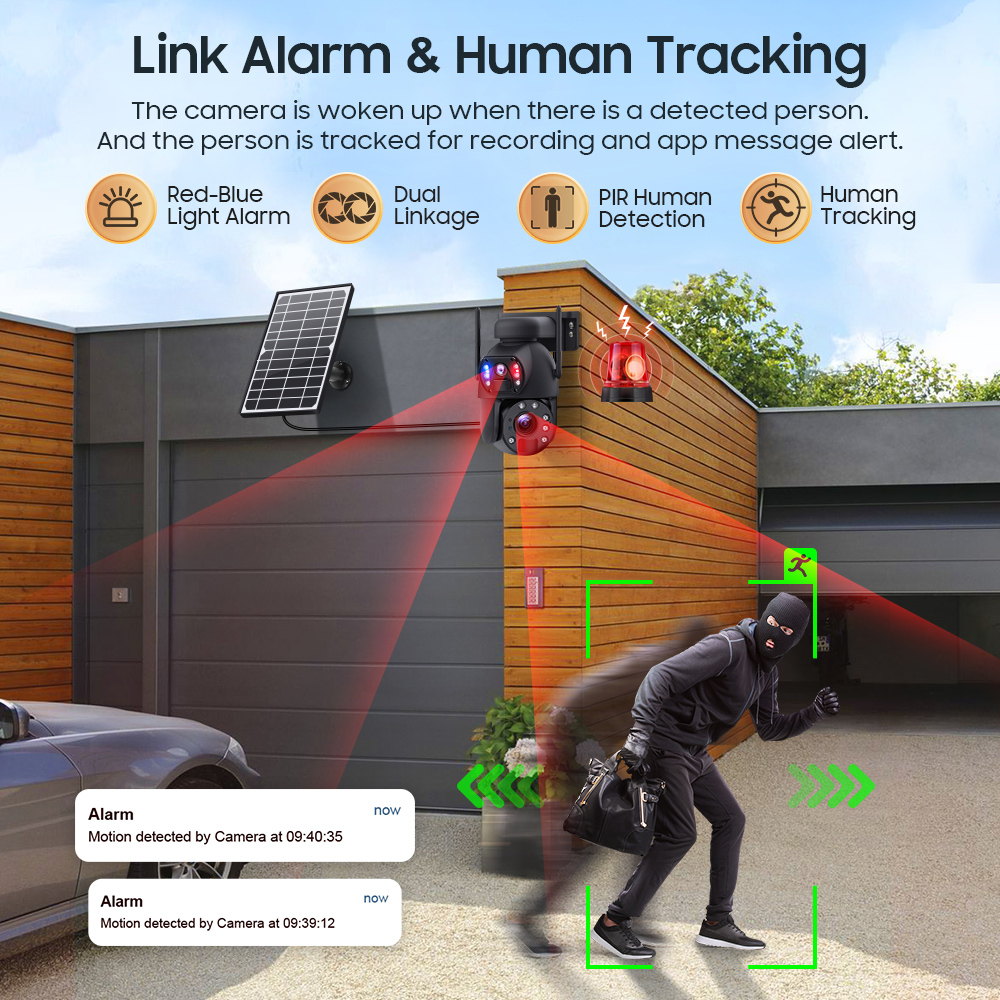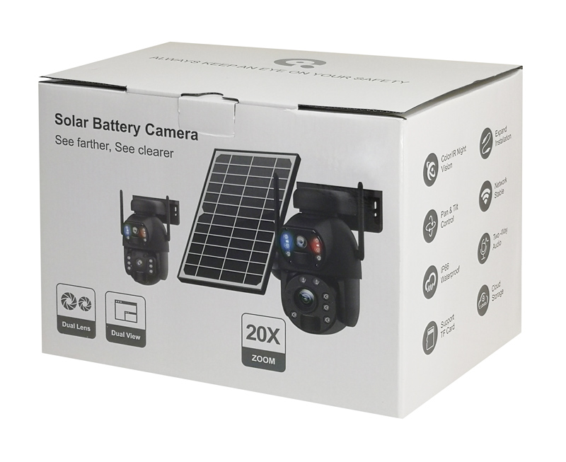 SECTEC smart ηλιακή κάμερα ST-5986M, 3MP dual lens, 20x zoom, WiFi, SD, PTZ