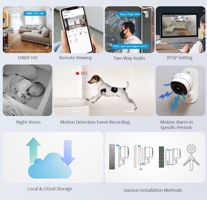 Ο έλεγχος της γίνεται απομακρυσμένα από smartphone μέσω Wi-Fi και της εφαρμογής eWeLink. Μπορεί να εντοπίζει ανθρώπινη σιλουέτα και κίνηση και να ειδοποιήσει τον ιδιοκτήτη με push notifications απευθείας στο smartphone αλλά και να ενεργοποιεί ηχητικό συναγερμό.