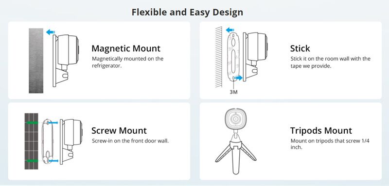 Είναι μικρή σε μέγεθος και βολική στην τοποθέτηση, καθώς μπορεί να τοποθετηθεί μαγνητικά σε μεταλλική επιφάνεια, με αυτοκόλλητο ή βίδες σε επίπεδη επιφάνεια αλλά και σε τρίποδα με σπείρωμα 1/4″.