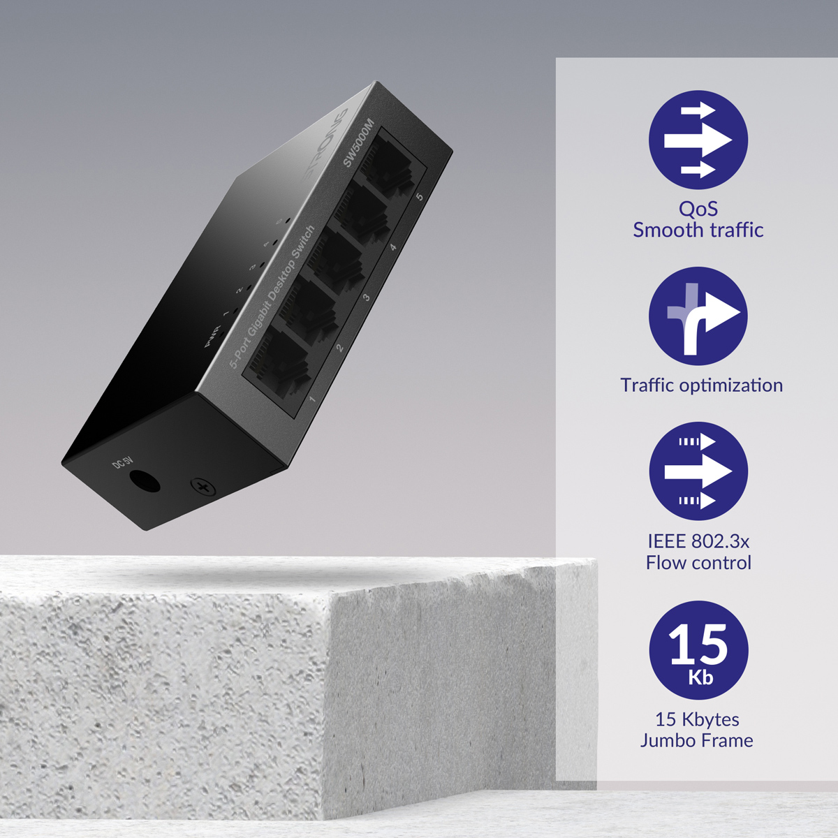 -Ethernet Ports: 5x Gigabit RJ45 Ports 10/100/1000 Mbps, Support Auto MDI/MDIX