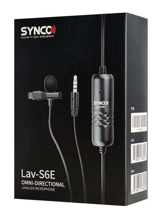 SYNCO μικρόφωνο Lav-S6E με clip-on, omnidirectional, 3.5mm, 6m, μαύρο
