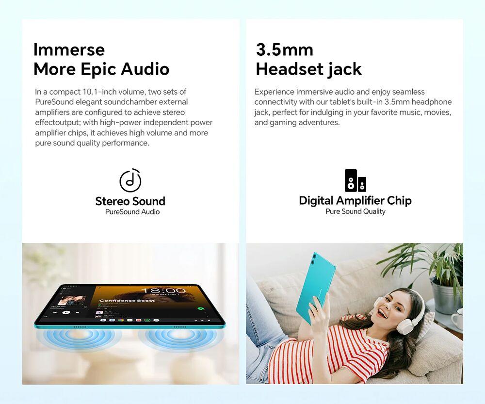Με 4GB (+8GB virtual) RAM και 128GB ROM για να αποθηκεύετε τα αγαπημένα σας αρχεία, φωτογραφίες και βίντεο. Επιπλέον, προσφέρει την δυνατότητα να επεκτείνετε τον χώρο αποθήκευσης του tablet με κάρτα micro SD έως 1TB.