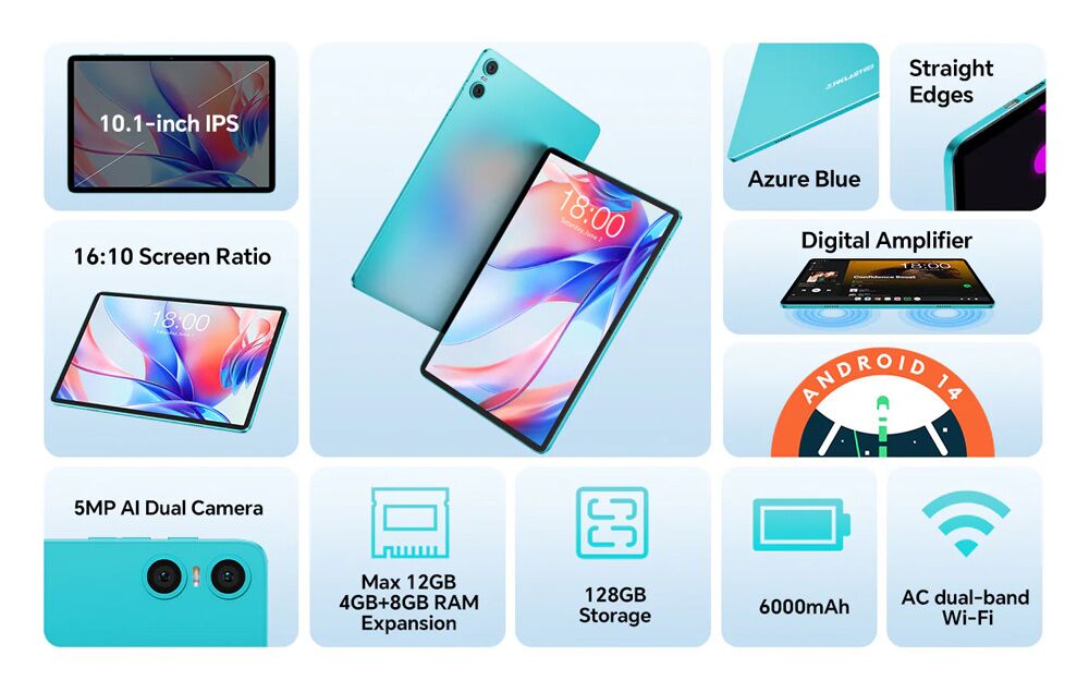 TECLAST tablet P30, 10.1″, 4/128B, Android 14, 6000mAh, μπλε