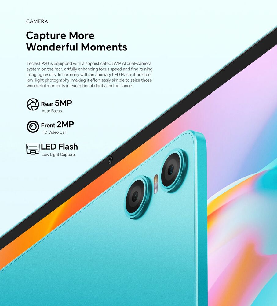 Το tablet P30 της Teclast συνδυάζει εντυπωσιακές επιδόσεις και εκλεπτυσμένο σχεδιασμό. Με μεγάλη οθόνη 10.1″, ευέλικτο σύστημα λειτουργικού Android 14 και ισχυρό οκταπύρηνο επεξεργαστή, το P30 προσφέρει υψηλή απόδοση, για απρόσκοπτη περιήγηση στο διαδίκτυο, παιχνίδια, πολυμέσα και πολλά άλλα.
