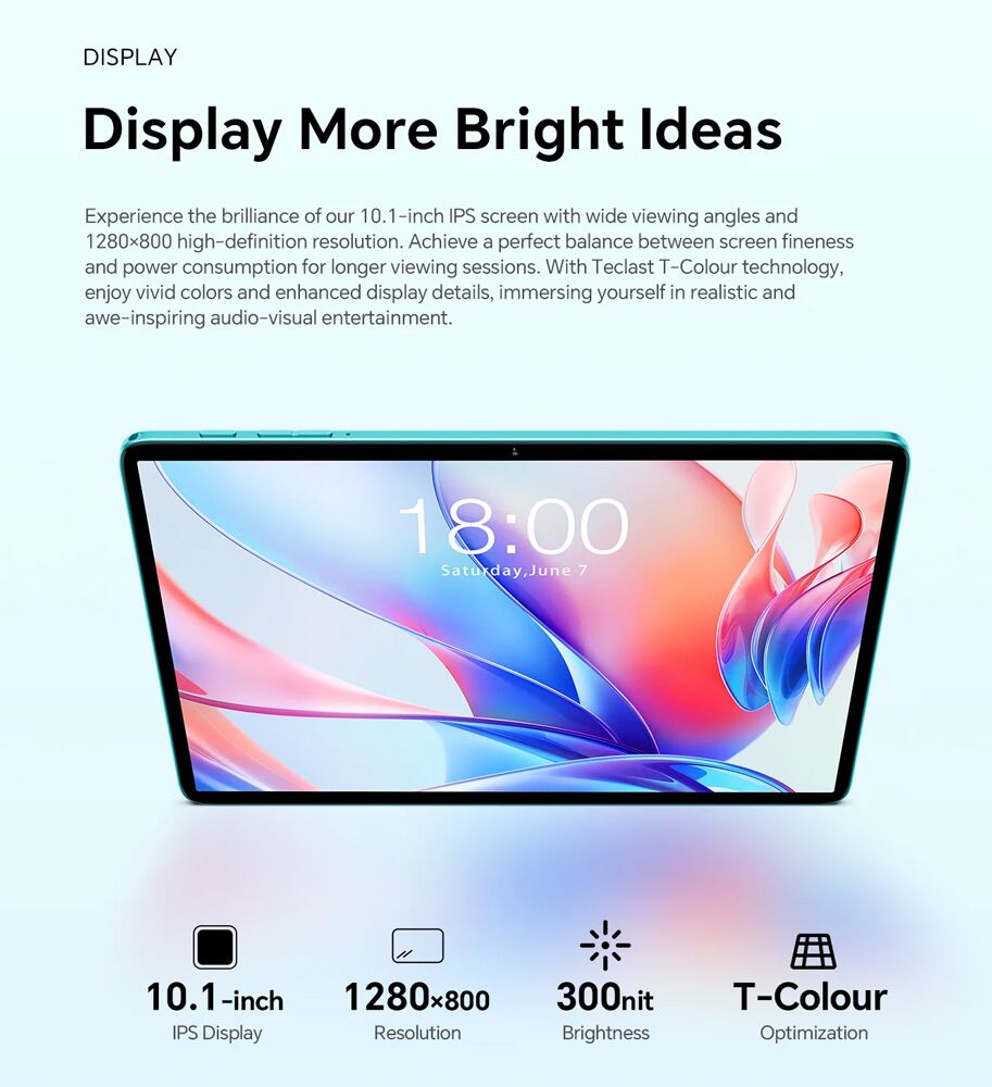 Απολαύστε εντυπωσιακή οπτική εμπειρία με την 10.1 ιντσών IPS οθόνη ανάλυσης 1280×800, που προσφέρει ζωντανά χρώματα και ευανάγνωστη εικόνα.