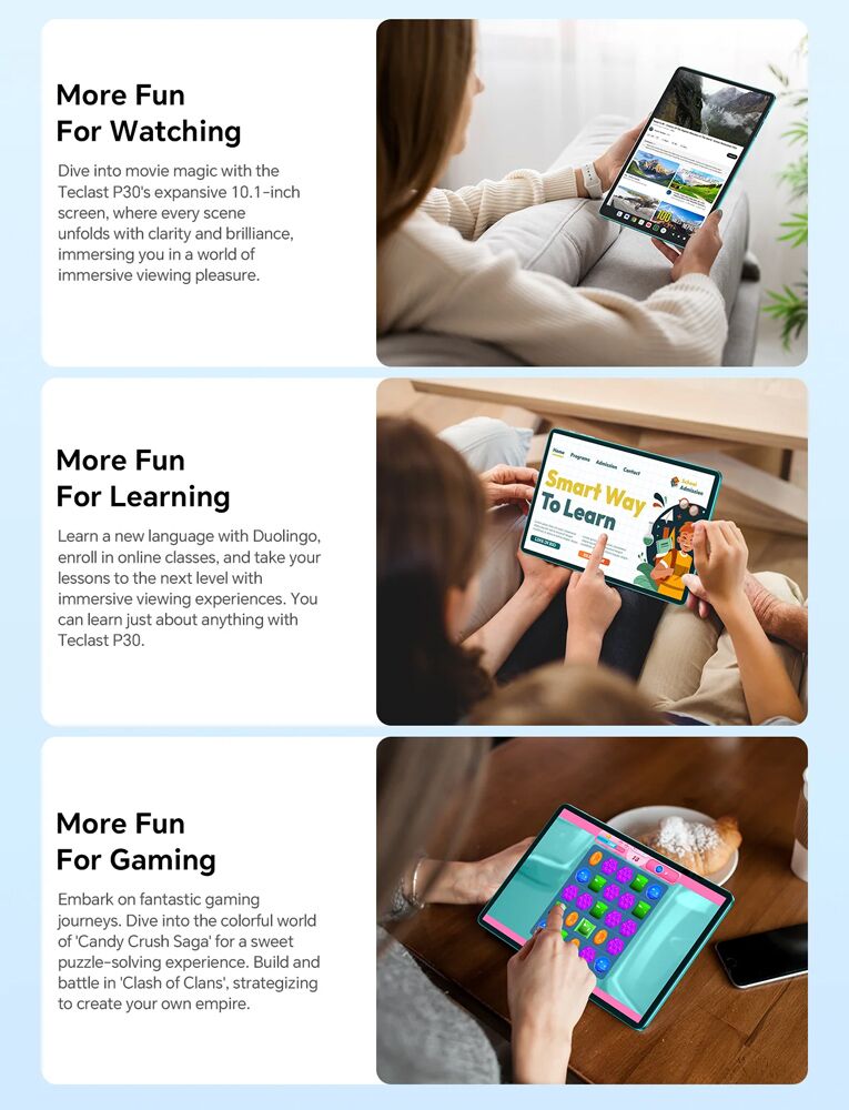 Εξοπλισμένο με επεξεργαστή 8 πυρήνων και λειτουργικό Android 14, το P30 προσφέρει υψηλή απόδοση για απρόσκοπτη περιήγηση στο διαδίκτυο, παιχνίδια, πολυμέσα και πολλά άλλα.