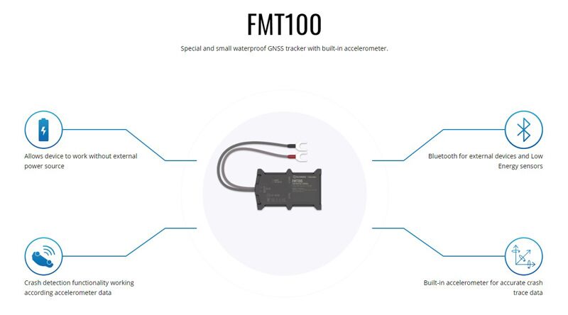 Το FMT1001A9S01 είναι ένα μοντέλο έξυπνης τεχνολογίας και μικρό σε μέγεθος. Υποστηρίζει σύνδεση Bluetooth, έχει εσωτερική κεραία GNSS μεγάλης εμβέλειας και επίσης διαθέτει εσωτερική εφεδρική μπαταρία. Είναι εξοπλισμένο με ειδικό clamp σύνδεσμο για γρήγορη σύνδεση του καλωδίου τροφοδοσίας με την μπαταρία του αυτοκινήτου. Διαθέτει στερεά αδιάβροχη θήκη και ενσωματωμένο αισθητήρα επιταχυνσιόμετρου με εξαιρετικά ακριβή λειτουργία εντοπισμού πρόσκρουσης, γεγονός που καθιστά αυτή τη συσκευή απόλυτα κατάλληλη για λύσεις ασφαλιστικής αγοράς.