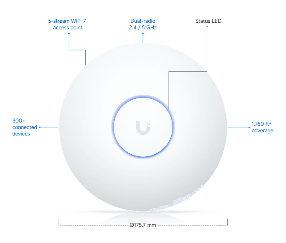 UBIQUITI Access Point UniFi U7 Long-Range, WiFi 7, Dual band, PoE
