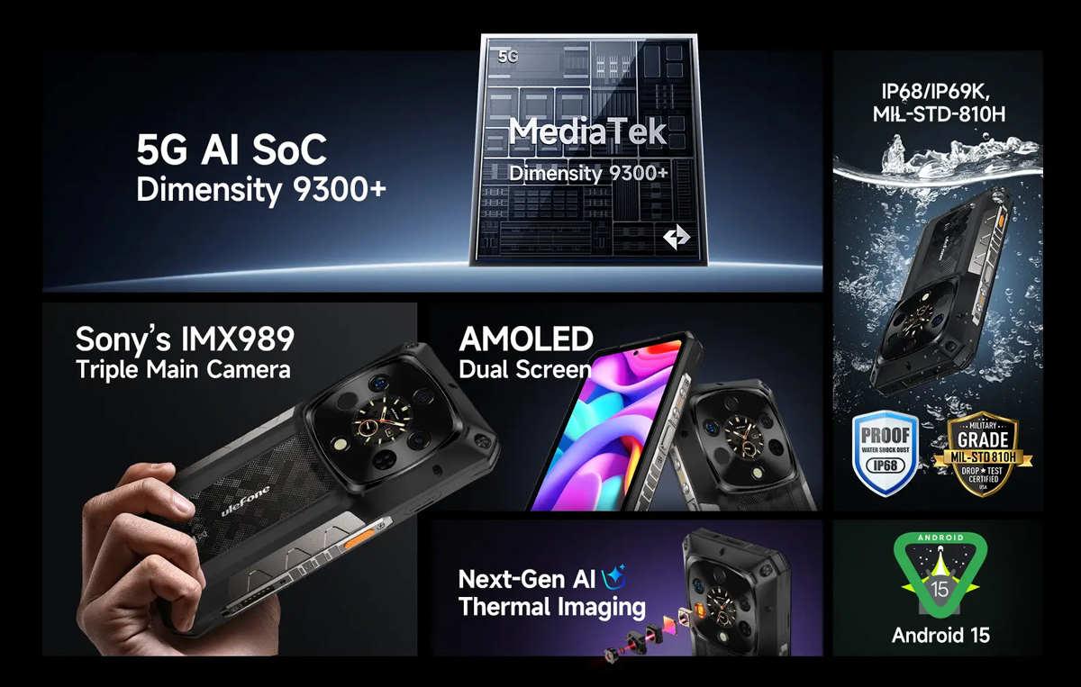 ULEFONE smartphone Armor 28 Ultra Thermal, 6.67″ & 1.04, 16/1TB, 5G, 10600mAh, IP68/IP69K, μαύρο