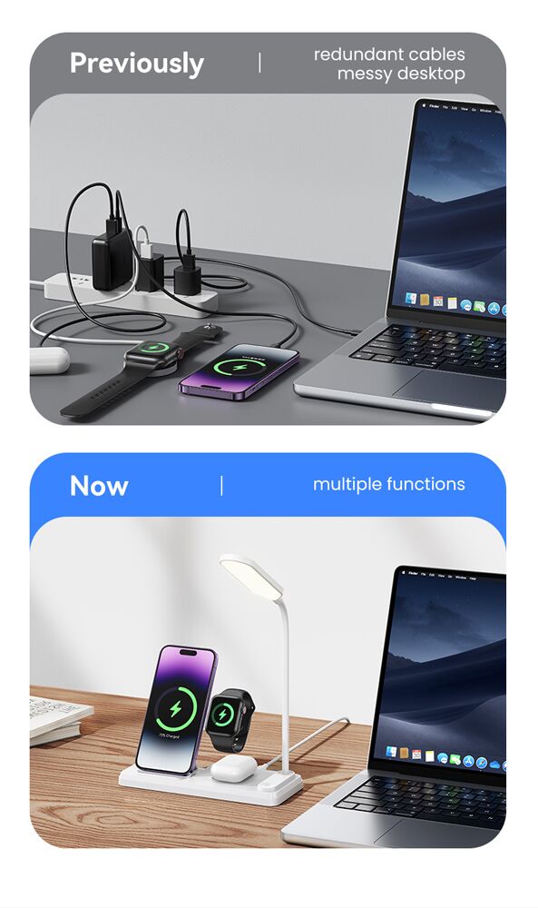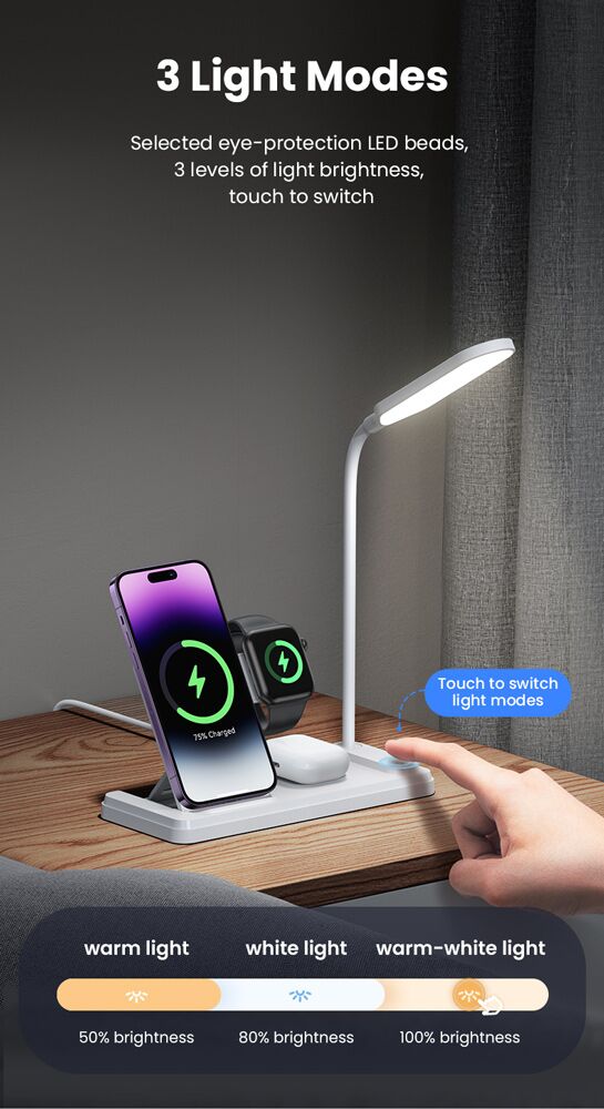 USAMS ασύρματος φορτιστής US-CD195 με φωτιστικό, 4 σε 1, 15W, λευκός