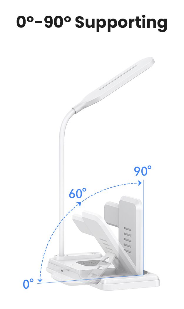Η βάση τοποθέτησης του smartphone διαθέτει ρυθμιζόμενη γωνία ενώ ο βραχίονας του φωτιστικού είναι εύκαμπτος και περιστρεφόμενος.