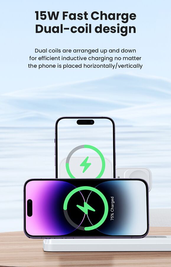Ο ασύρματος φορτιστής της Usams επιτρέπει την ταυτόχρονη ασύρματη φόρτιση smartphone, smartwatch και θηκών φόρτισης earbuds με μέγιστη απόδοση 15W.