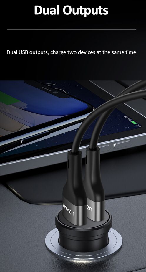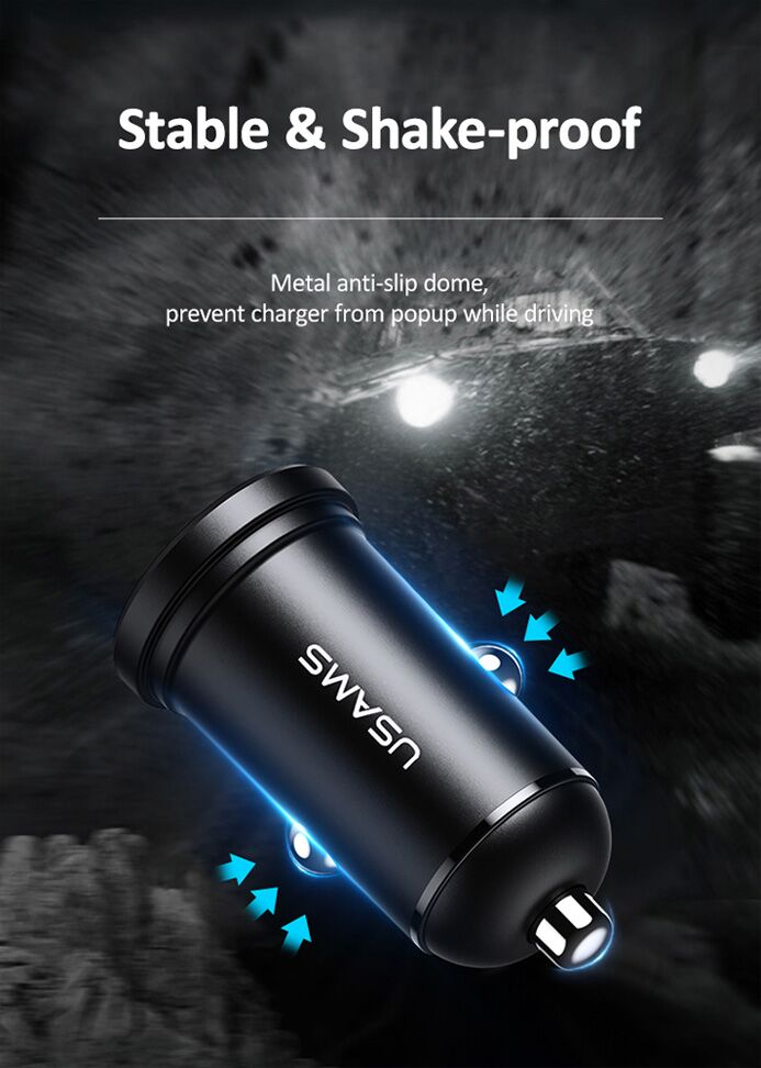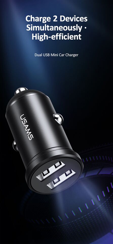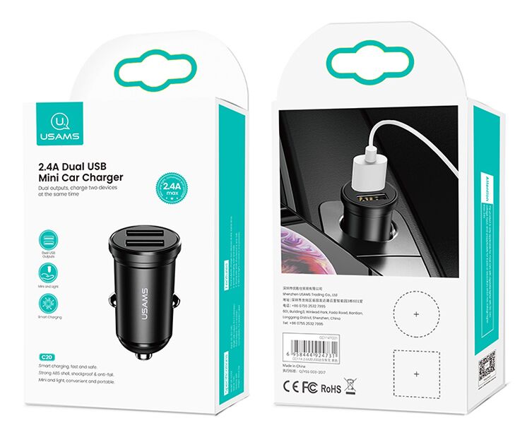 Υψηλής απόδοσης USB φορτιστής αυτοκινήτου της Usams, κατασκευασμένος από ανθεκτικό πλαστικό και συμβατός με όλες τις συσκευές που φορτίζουν μέσω USB θύρας. Ο φορτιστής C20 είναι μικρός σε μέγεθος και το μεγαλύτερο μέρος του χωνεύει στην πρίζα του αυτοκινήτου.
