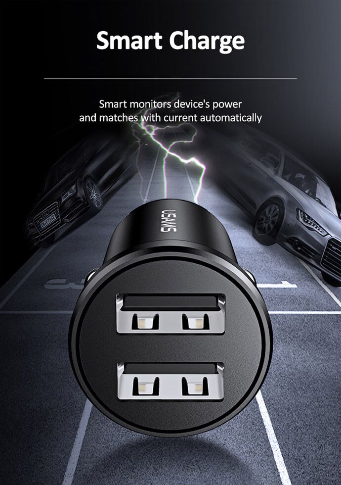 USAMS φορτιστής αυτοκινήτου C20, 2x USB, 2.4A, μαύρος