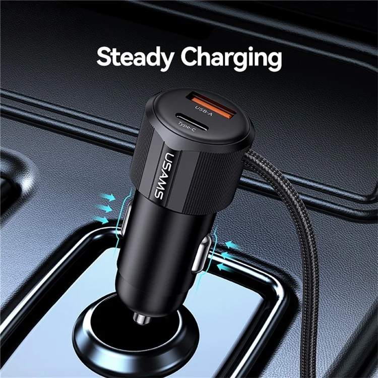 USAMS φορτιστής αυτοκινήτου CC287 με 2 σε 1 καλώδιο, USB/USB-C θύρες, 66W, μαύρος