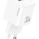 USAMS φορτιστής τοίχου CC263, USB & USB-C, 30W, GaN, λευκός