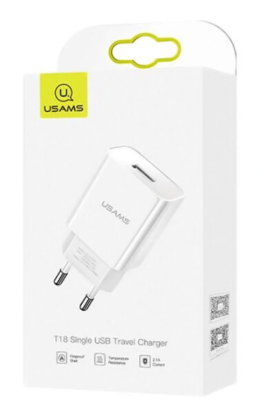 USAMS φορτιστής τοίχου T18, 1x USB, 2.1A, λευκός