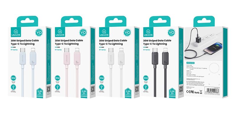 Καλώδιο φόρτισης και μεταφοράς δεδομένων Lightning σε USB-C της Usams. Υποστηρίζει φόρτιση με απόδοση έως 30W και μεταφορά δεδομένων με ταχύτητα έως 480Mbps.