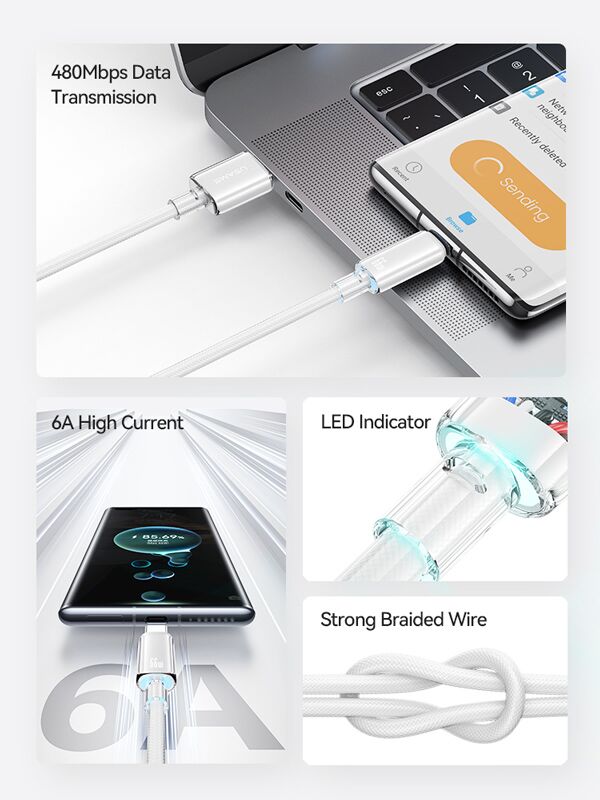 Καλώδιο φόρτισης και μεταφοράς δεδομένων USB-C σε USB της Usams. Υποστηρίζει φόρτιση με απόδοση έως 66W και μεταφορά δεδομένων με ταχύτητα έως 480Mbps.