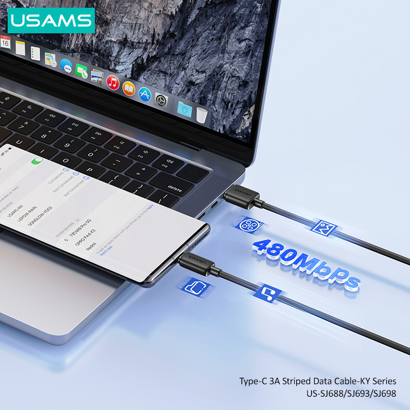 Καλώδιο φόρτισης και μεταφοράς δεδομένων USB-C σε USB της Usams. Υποστηρίζει φόρτιση με απόδοση έως 3A και μεταφορά δεδομένων με ταχύτητα έως 480Mbps.