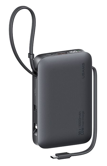 USAMS power bank CD228 με 2x καλώδια, 2x θύρες εξόδου, 10000mAh, 20W, γκρι