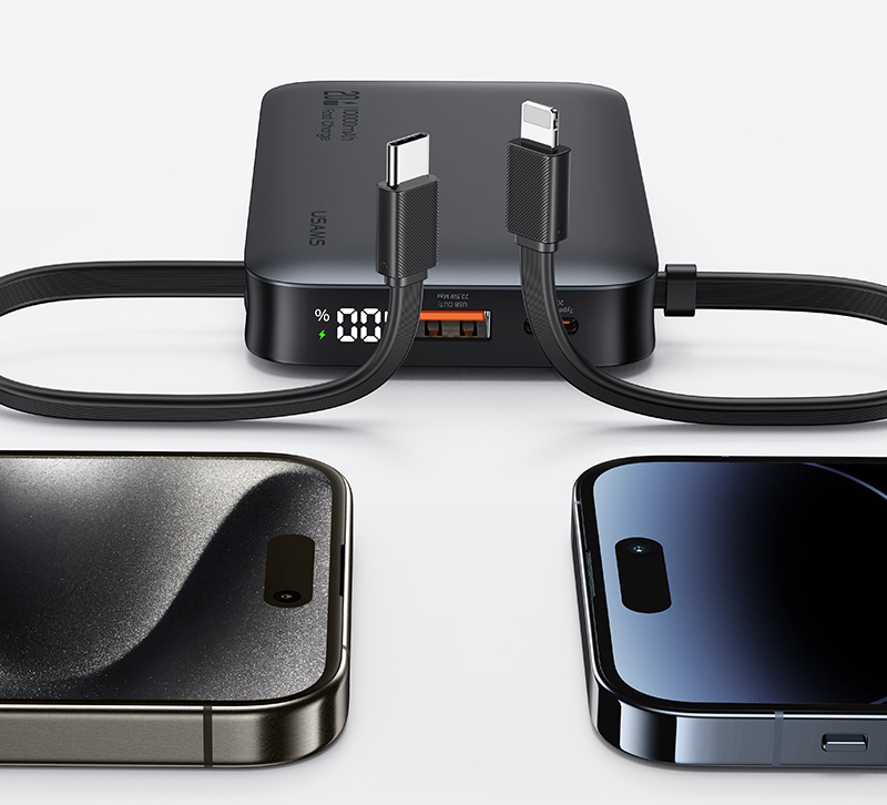 Η φόρτιση του power bank γίνεται μέσω της USB-C θύρας ή ενσωματωμένου καλωδίου και εξοπλίζεται με ψηφιακή οθόνη για την ένδειξη κατάστασης της μπαταρίας.