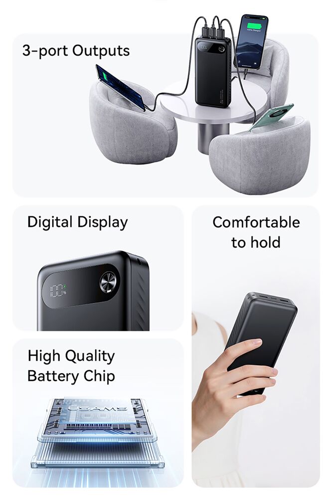 USAMS power bank CD251 με οθόνη, 3x θύρες εξόδου, 20000mAh, PD20W, μαύρο
