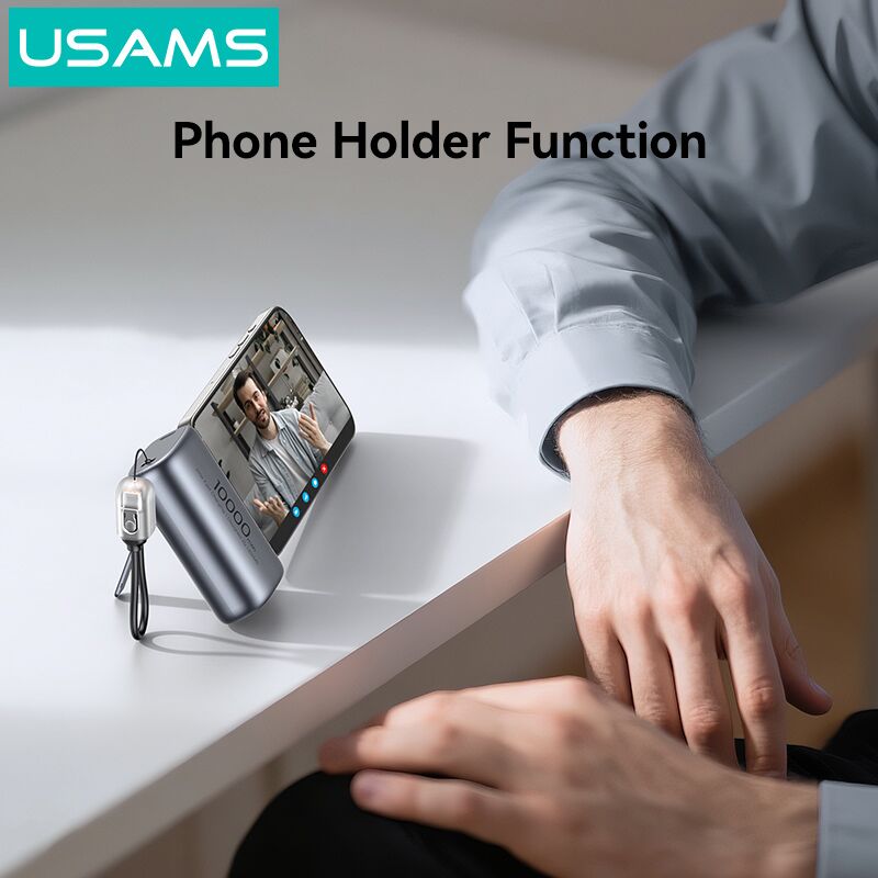 USAMS power bank CD252 με stand, 2x θύρες εξόδου, 10000mAh, 20W, γκρι