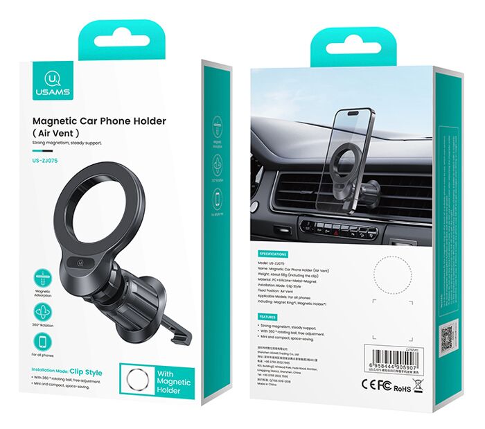 USAMS βάση smartphone αυτοκινήτου US-ZJ075, αεραγωγών, μαγνητική, μαύρη