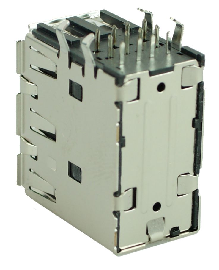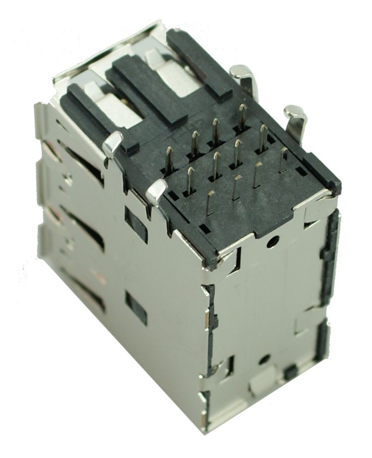 USB 2.0 Connector Triple, up, Silver/Black