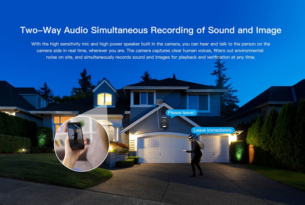 -Sound light alarm: Sound and light alarm, infrared & white light x2, full color night vision