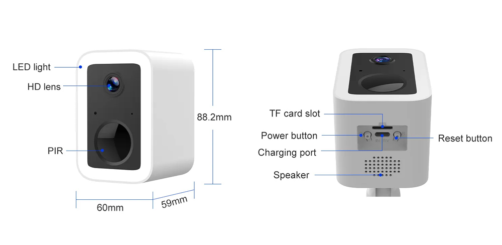 -Power supply: 5200mAh battery, 2x 21700, supports external 2w solar panel
