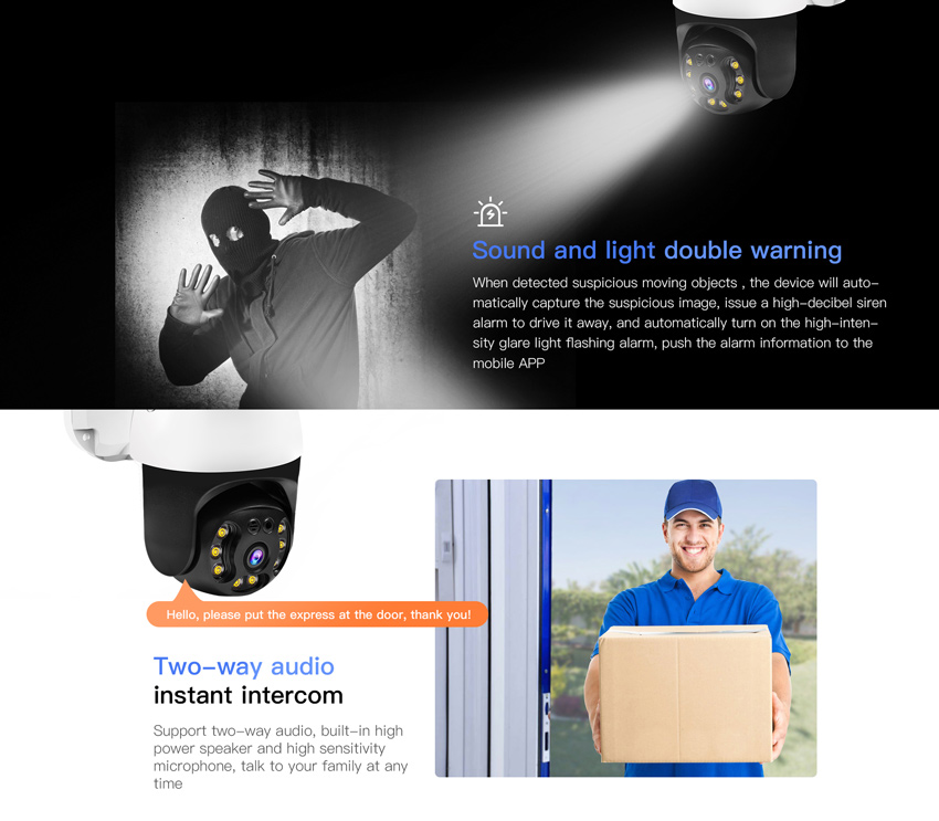 Alarm Trigger: Support motion detection, human detection, human tracking, absence detection