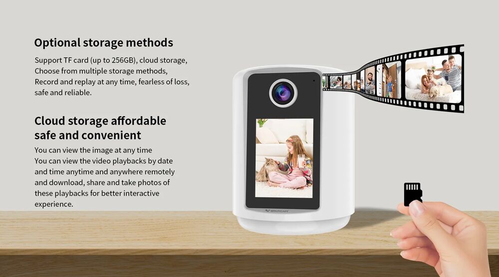 Η αποθήκευση των αρχείων γίνεται απευθείας σε κάρτα μνήμης micro SD (δεν συμπεριλαμβάνεται) ή σε λογαριασμό στο cloud.